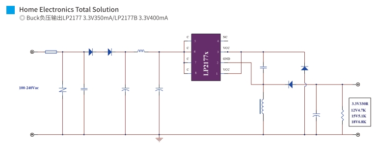 輸入電壓范圍:LP2177B支持85Vac至265Vac的全電壓輸入,使其在全球范圍內(nèi)都能穩(wěn)定工作。