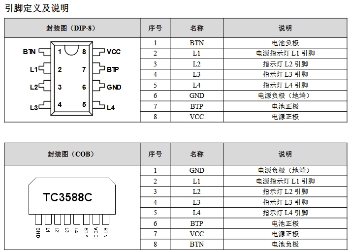 L1(引腳2)、L2(引腳3)、L3(引腳4)、L4(引腳5):指示燈引腳