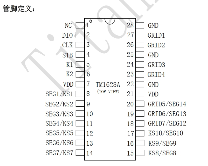 TM1628天微SOP28封裝 帶鍵盤掃描接口的LED驅(qū)動(dòng)控制專用IC