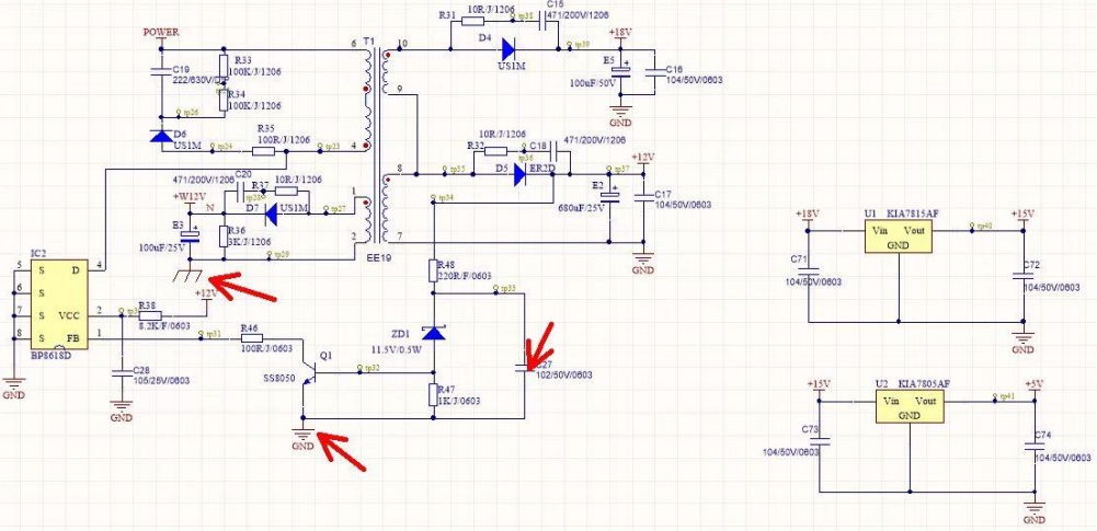 電路板實(shí)物圖是電路設(shè)計(jì)的直觀呈現(xiàn)。從實(shí)物圖中可以看到,該電源方案的電路板布局緊湊合理,元件排列整齊,布線清晰。主控芯片 BPA8618D 安裝在電路板的正面,周圍分布著與其相關(guān)的電阻、電容等元件,便于信號(hào)傳輸和調(diào)試。變壓器 T1 位于電路板的中心位置,占據(jù)了較大的空間,其多繞組結(jié)構(gòu)通過(guò)不同的引腳與電路連接,實(shí)現(xiàn)了高效的能量轉(zhuǎn)換。輸出端的接口設(shè)計(jì)在電路板的邊緣,便于與外部設(shè)備連接。整個(gè)電路板采用了雙面板設(shè)計(jì),通過(guò)合理的布線和元件布局,有效減少了電磁干擾,提高了電路的穩(wěn)定性和可靠性。