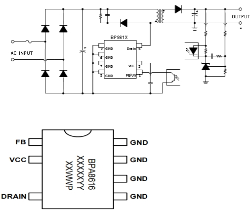 主控芯片 BPA8618D:作為整個(gè)電源方案的“大腦”,負(fù)責(zé)控制開(kāi)關(guān)頻率、占空比以及實(shí)現(xiàn)各種保護(hù)功能,確保充電過(guò)程的安全與高效。