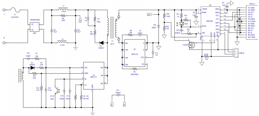 在當今快速發(fā)展的電子設備市場中,電源適配器的性能和效率對于設備的穩(wěn)定運行至關重要。隨著USB-C接口和USB-PD協(xié)議的廣泛應用,市場對高性能、高效率的電源適配器的需求日益增加。本文將詳細介紹基于BP87112和BP6211B芯片的20W A+C電源適配器參考設計,該設計支持12V/1.67A、9V/2.22A和5V/3A的輸出規(guī)格,旨在為用戶提供一個高效、可靠的電源解決方案。