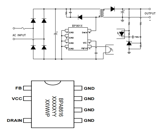 此外,BPA8619P 還集成了多種保護功能,如過壓保護(OVP)、欠壓保護(UVP)、過流保護(OCP)以及短路保護(SCP)等。這些保護功能為電源系統(tǒng)提供了全方位的安全保障,能夠在各種異常情況下及時切斷電源輸出,保護電路免受損壞,延長設備的使用壽命,同時也提高了電源系統(tǒng)的可靠性和安全性。
