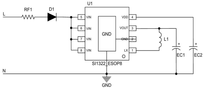 SI1322 的典型應用電路簡潔明了,易于理解和實現(xiàn)。