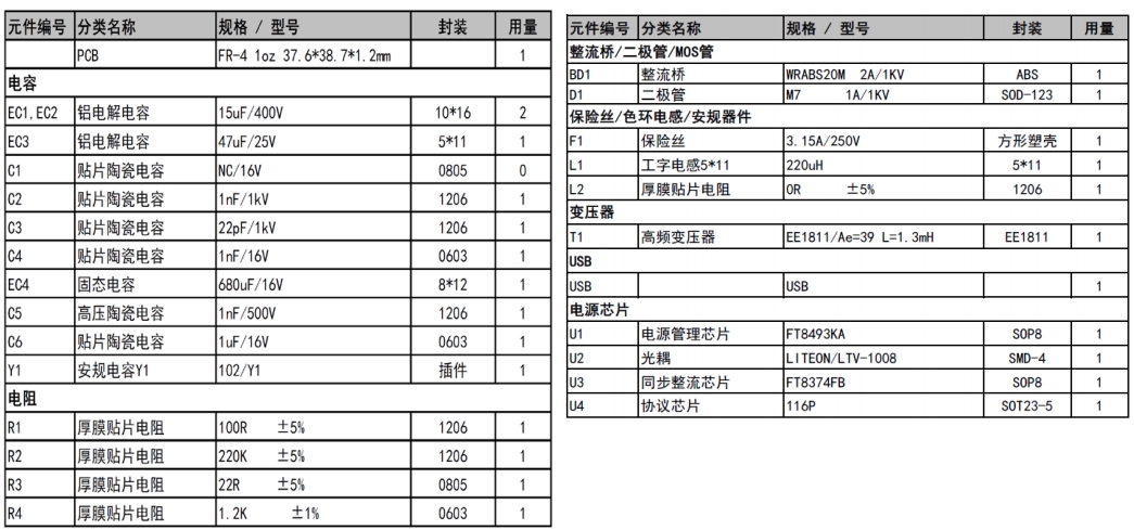 器件溫度測試結(jié)果顯示,在不同輸入電壓和輸出條件下,關(guān)鍵器件的溫度均在安全范圍內(nèi)。例如,在5V3A輸出時,F(xiàn)T8493KA芯片的溫度在90Vac輸入下為111.0℃,230Vac輸入下為105.1℃。這些溫度數(shù)據(jù)表明,該設(shè)計能夠在各種工作條件下保持穩(wěn)定,不會因過熱而損壞。
