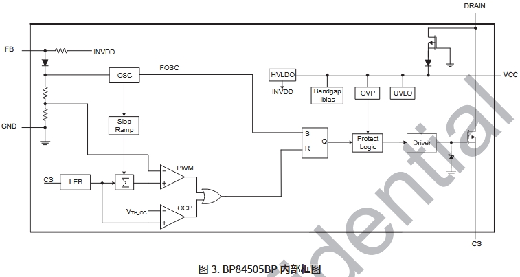 BP84505P的輸入端通常連接到交流電源,通過整流橋將其轉換為直流電壓,為后續(xù)的電路提供穩(wěn)定的輸入。輸入電壓范圍通常為90V~264V,能夠適應不同地區(qū)的電網電壓波動,確保設備在全球范圍內都能正常工作。在輸入端還配備有過壓保護(OVP)和欠壓保護(UVLO)功能,當輸入電壓超過或低于設定閾值時,芯片將自動關閉輸出,保護電路免受損壞。