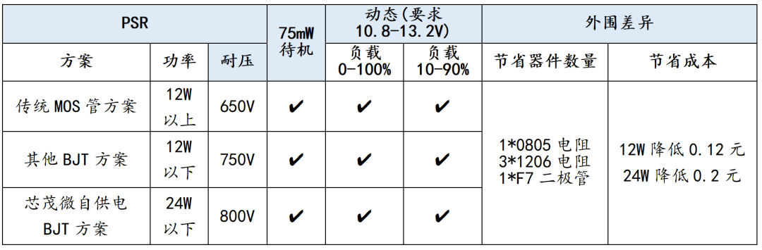 下面附上芯茂微新型自供電BJT方案產(chǎn)品型號(hào)列表: