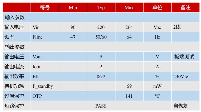在不同輸入電壓下,S7134B芯片的待機功耗均低于75mW,滿足六級能效的待機功耗要求。具體數(shù)據(jù)如下表所示: