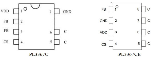 PL3367C提供SOP7和SOP8兩種封裝選項,滿足不同設計需求。SOP7封裝適用于緊湊型設計,而SOP8封裝則提供了更多的引腳空間,便于布線和散熱。