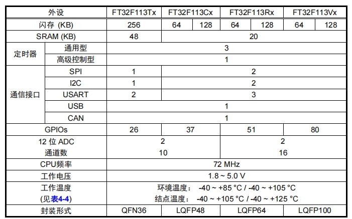 | 64KB | LQFP48 | FT32F113C8AT7 | STM32F103C8Tx |