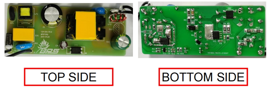 實(shí)物圖展示了電源方案的完整外觀,包括元件的安裝位置和連接方式。通過合理的布局,確保了元件之間的電氣間隙和散熱性能。例如,變壓器(T1)和電解電容(C1)等發(fā)熱元件被放置在通風(fēng)良好的位置,以避免熱量積聚影響電源的穩(wěn)定性。