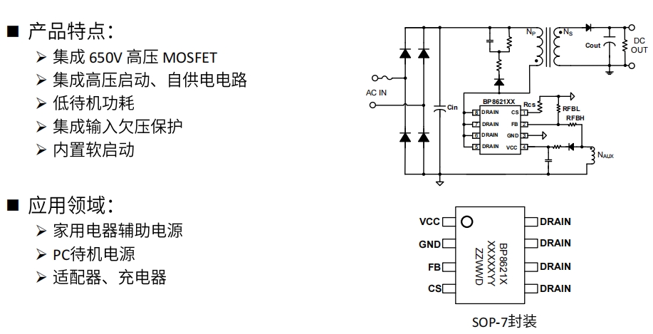 BP86216P 是由晶豐明源(BrightPower Semiconductor)推出的一款高性能電源管理芯片,專(zhuān)為中小功率電源適配器設(shè)計(jì)。它集成了 650V MOSFET,并采用先進(jìn)的控制技術(shù),能夠?qū)崿F(xiàn)高效率、低待機(jī)功耗和優(yōu)異的動(dòng)態(tài)響應(yīng)。