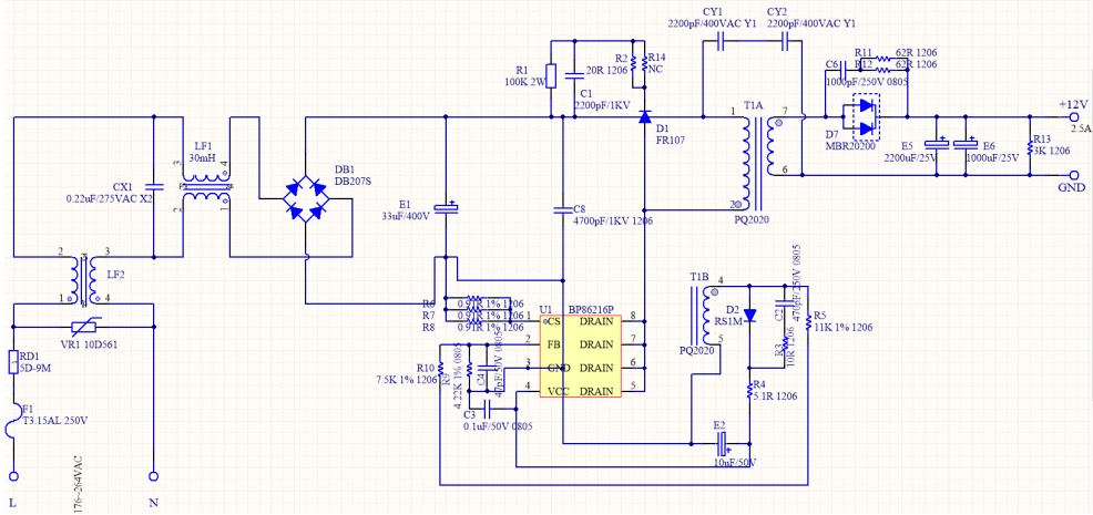 在現(xiàn)代家用電器市場(chǎng)中,電源適配器的效率和穩(wěn)定性至關(guān)重要。今天,我們將深入剖析一款基于 BP86216P 的 12V2.5A 電源方案,其實(shí)測(cè)效率超過(guò) 85%,堪稱(chēng) 30W 功率段的“小鋼炮”。