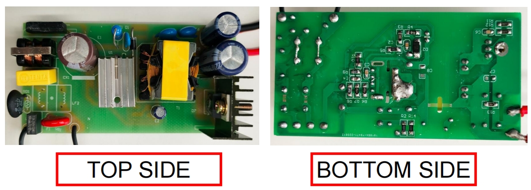 從實(shí)物圖可以看出,BP86216P 的電路板設(shè)計(jì)簡(jiǎn)潔明了。所有元件均采用貼片工藝,確保了生產(chǎn)的高效性和一致性。變壓器和電解電容的體積適中,能夠適應(yīng)大多數(shù)小型電源適配器的外殼。