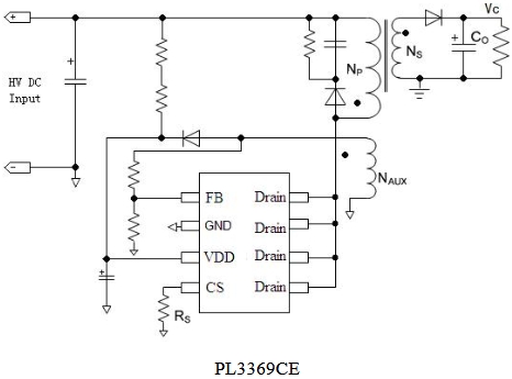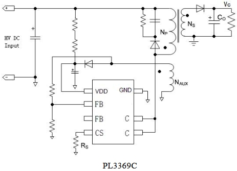 | PL3369C | SOP-7 | 內置 BJT | ≈ 7 W | 5 V-1 A 或 12 V-0.5 A 超小體積 |