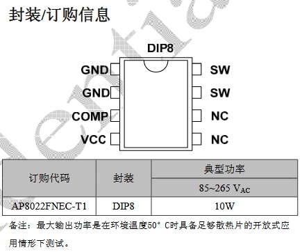 AP8022(Chipown)在 10 W 以內(nèi)的小功率離線反激方案里非常常見: