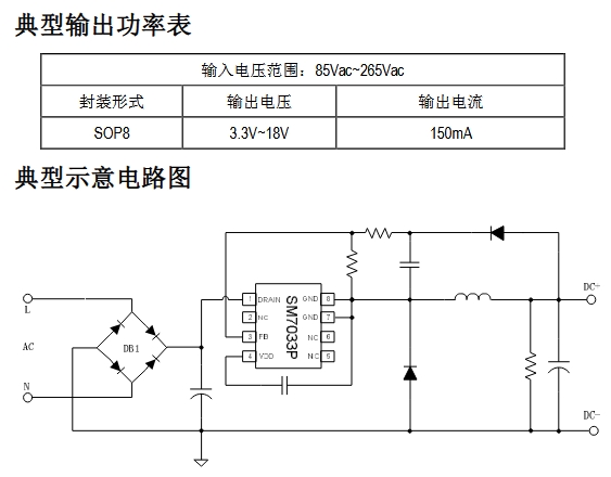 在 IoT 小家電、智能面板或傳感節(jié)點(diǎn)里,工程師最怕的就是“待機(jī)電源”——功率不大,卻占掉寶貴的 PCB 面積和 BOM 成本。明微推出的 SM7033PK,用一顆 SOP-8 封裝就把 85-265 VAC 輸入、3.3-18 V/150 mA 輸出的恒壓方案做到了極致精簡(jiǎn):整流橋之后,只需 5 個(gè)外圍元件即可上電運(yùn)行,真正讓“小體積”與“低成本”兼得。