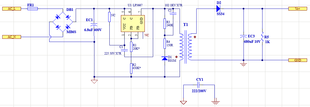 在微型化、低功耗LED照明應(yīng)用中,隔離型輔助電源始終是工程師關(guān)注的重點。深圳三佛科技所代理推出的 LP3667AH 方案,以 2.5W輸出功率、雙繞組結(jié)構(gòu)、極簡BOM 為特色,成為小功率LED模塊、智能開關(guān)、家電指示燈等場景的理想之選。本文將結(jié)合 原理圖、PCB實物圖、變壓器資料,全面拆解LP3667AH的設(shè)計亮點與實戰(zhàn)要點。