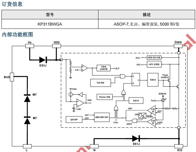 | 保護(hù) | 7 合 1 | UVLO/OCP/OVP/OTP/OLP/LEB/自恢復(fù) |
