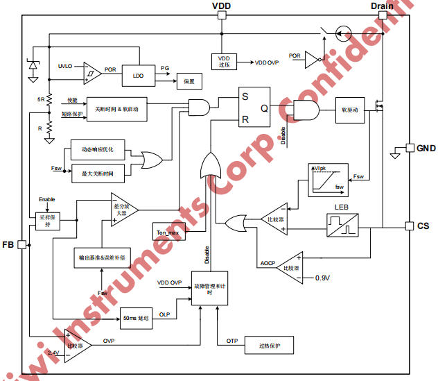 該方案支持降壓型(BUCK)與升降壓型(Buck-Boost)拓?fù)?,適配不同輸入輸出極性需求。系統(tǒng)工作于準(zhǔn)諧振模式,在輕載時(shí)自動(dòng)降頻,兼顧效率與EMI性能。