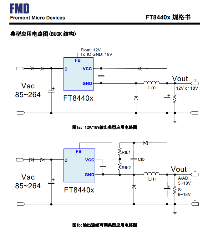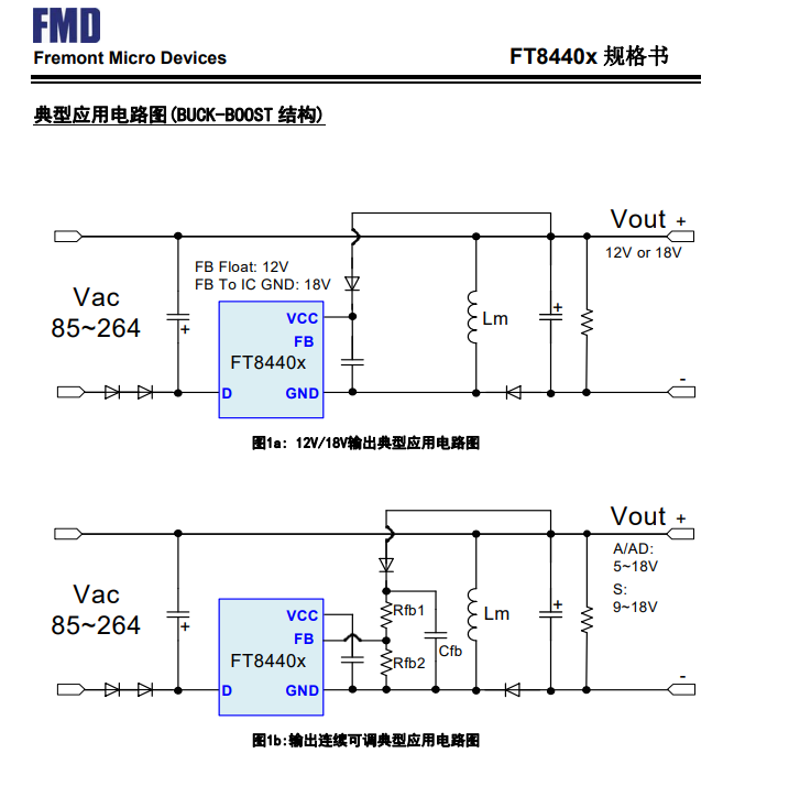 FB接分壓電阻:輸出連續(xù)可調(diào) FT8440S/Bx:9~18V
