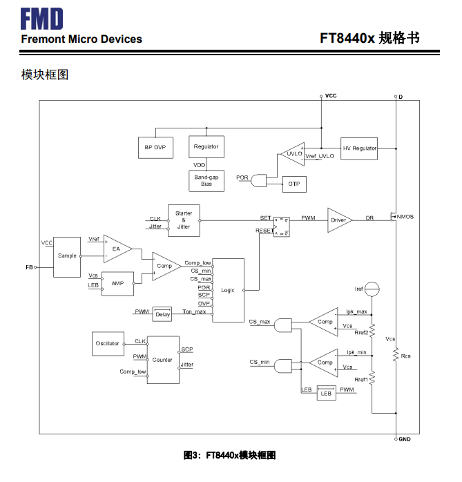 FT8440x采用超高壓工藝,內(nèi)部集成高壓?jiǎn)?dòng)電路,高壓功率開關(guān),以及電流采樣電阻,減少了外部元器件,極大地簡(jiǎn)化了系統(tǒng)應(yīng)用。內(nèi)置的頻率抖動(dòng)和軟驅(qū)動(dòng)設(shè)計(jì)能有效提高EMI性能。