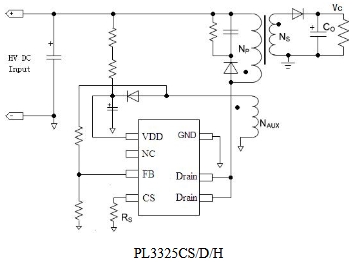 PL3325C 是一系列高效率、高集成度、原邊調(diào)節(jié)的 PWM功率開關(guān),其主要應用于小于 12W 的 AC/DC 反激式開關(guān)電源。PL3325C 通過去除光耦以及次級控制電路,簡化了充電器/適配器等傳統(tǒng)的恒流/恒壓的設(shè)計,從而實現(xiàn)高精度的電壓和電流調(diào)節(jié)。復合模式的應用使得芯片能夠?qū)崿F(xiàn)低靜態(tài)功耗、低音頻噪音、高效率。而且高集成的功率 MOSFET 能夠降低外部 PCB的面積以及系統(tǒng)的成本。
