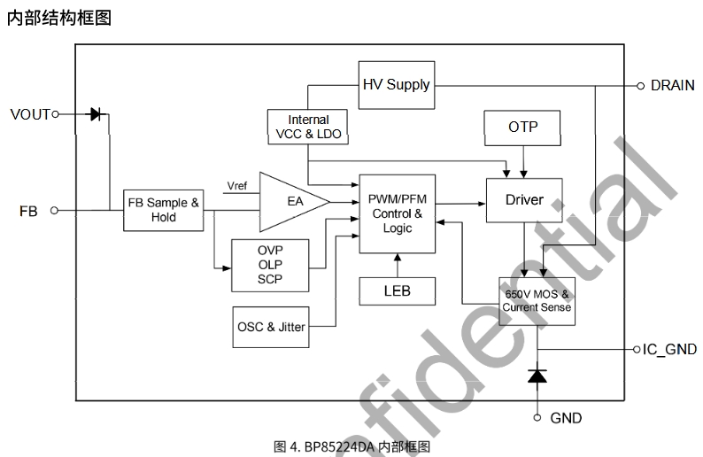 BP85224DA 是一款高性能、高集成度、低待機功耗的開關電源驅(qū)動芯片,適用于全電壓 85~265VAC 輸入的 Buck、Buck-Boost 變換器拓撲應用。 BP85224DA 內(nèi)部集成了 650V 高壓 MOSFET、高壓啟動和自供電電路、電流采樣電路、電壓反饋電路以及續(xù)流二極管,采用先進的控制技術(shù),無需外部 VCC 電容和環(huán)路補償即可實現(xiàn)優(yōu)異的恒壓輸出特性,極大地減少了外圍器件數(shù)量,節(jié)省了系統(tǒng)成本和體積,同時提高了可靠性。