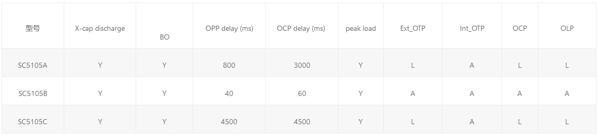 SC5105是一款集成高壓啟動與X-CAP放電功能的高性能電流模式PWM控制器,具有BO、OPP和OCP保護(hù)和鎖死功能,提高了系統(tǒng)的安全性。為適應(yīng)峰值負(fù)載,提供了峰值功率輸出功能;高低壓補(bǔ)償技術(shù)減小了高低壓OCP的差異;獨特的頻率抖動技術(shù)和GATE軟驅(qū)動技術(shù),改善了系統(tǒng)EMI性能。
