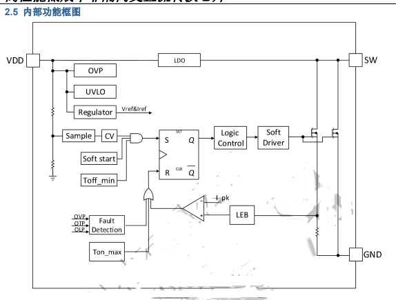 ◆ 內(nèi)置高壓啟動電路,電流、電壓采樣電路