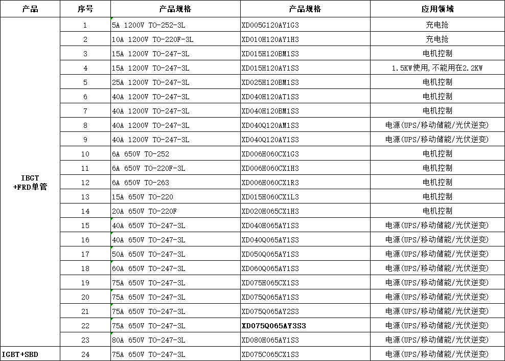 XD075Q065AY3S3 芯達(dá)茂國產(chǎn)IBGT +FRD單管75A 650V TO-247-3L  ,應(yīng)用:電源(UPS/移動儲能/光伏逆變)