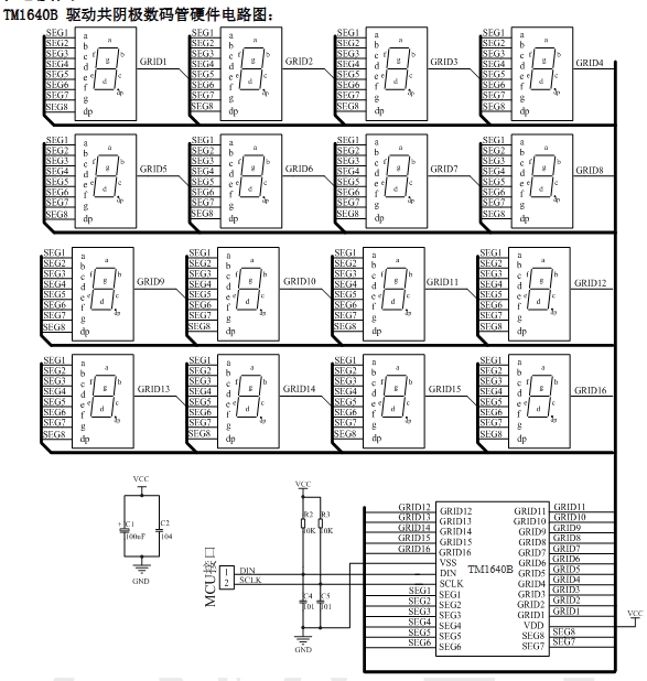 在計數(shù)應用中,微控制器可以根據(jù)外部事件或內(nèi)部計數(shù)器的值,通過TM1640B芯片顯示當前計數(shù)值。