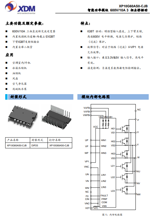 XP10G60AS0-CJBG國產(chǎn)智能功率模塊 600V/10A 3 相全橋驅(qū)動